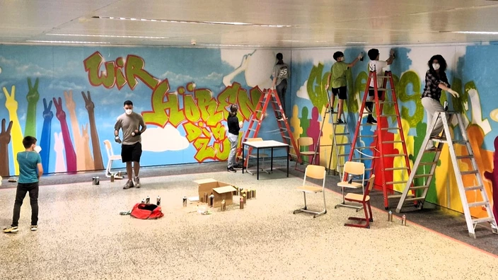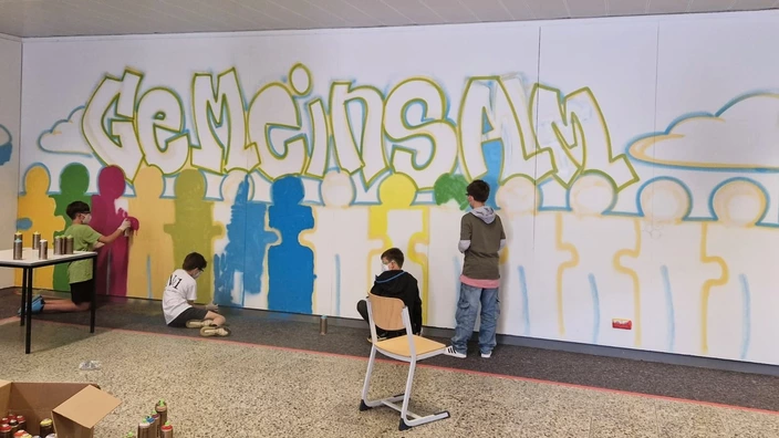 Bunte Botschaften: Schülerinnen und Schüler gestalten Graffiti am Raichberg-Schulzentrum