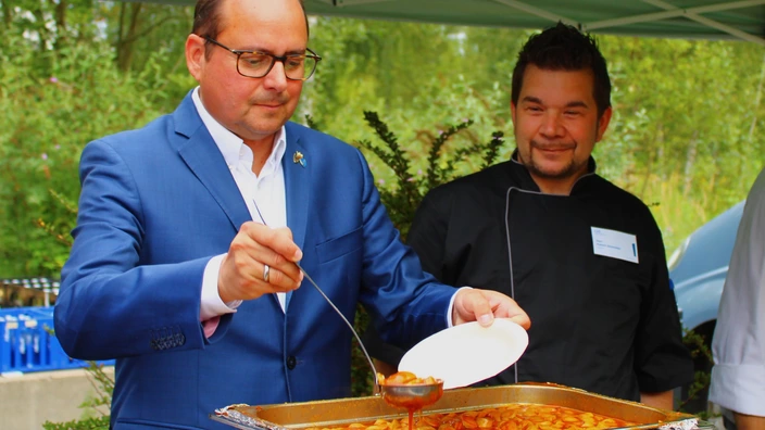CJD-Azubis versorgen Sparkassen-Team: Verpflegung und Currywurst vom Oberbürgermeister