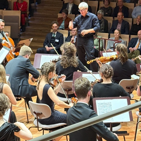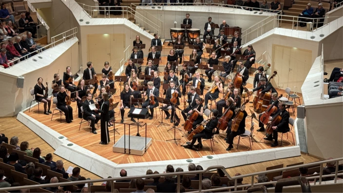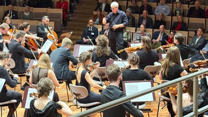 Rund 800 Besucherinnen und Besucher kamen, um junge Musikerinnen und Musiker aus dem ganzen Bundesgebiet zu hören. Das Orchester unter der Leitung von Christof Harr spielte Werke von Wolfgang Amadeus Mozart und Felix Mendelssohn Bartholdy. Ein besonderer Moment war die Uraufführung von „Dreamer *mashed up“. Das Stück stammt von David O’Grady-Sommer, einem langjährigen Mitglied des Orchesters, und verbindet klassische Musik mit modernen Klängen.