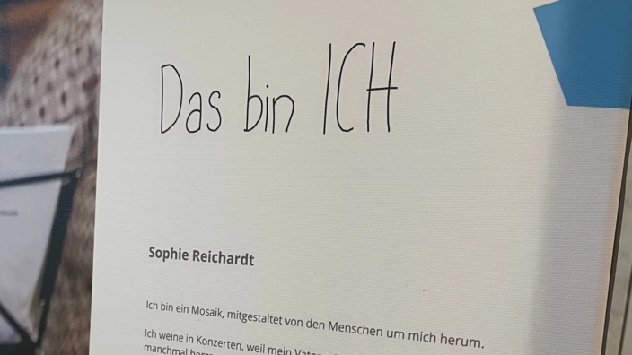 Im Foyer der Philharmonie stellten Teilnehmende der Kunsttherapie im CJD in Dortmund ihre Arbeiten aus dem Kunstprojekt „Das bin ich – einfach wunderbar“ vor. Sie beschäftigten sich darin mit der Frage: Wer bin ich?