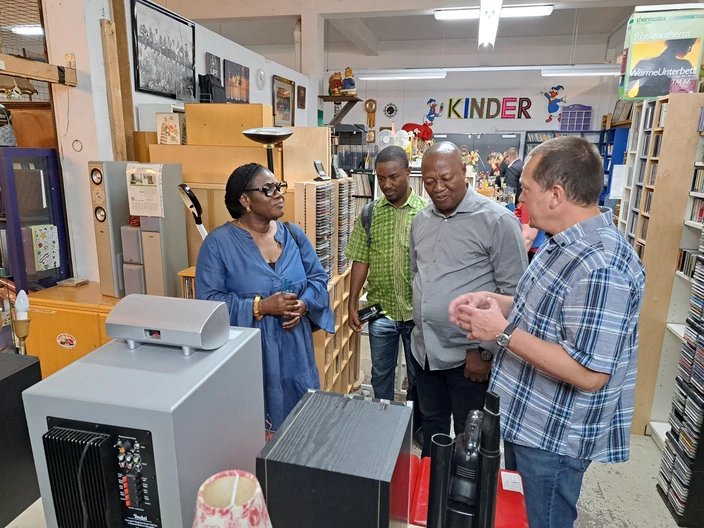 Im Fokus des Besuchs stand ein Rundgang durch die Bereiche, in denen Projekte verortet sind, die sich mit Upcycling, ReUse und der Zerlegung von Elektroschrott und dessen Rückführung in den Warenkreislauf beschäftigen. Die Gäste aus Ghana waren besonders daran interessiert, Ansätze zur Lösung dieser globalen Herausforderung kennenzulernen. Der geplante Wissenstransfer von Dortmund nach Ghana soll nicht nur zur Lösung ökologischer Probleme beitragen, sondern auch echte Entwicklungshilfe leisten und neue berufliche Perspektiven für die Menschen in Ghana schaffen.