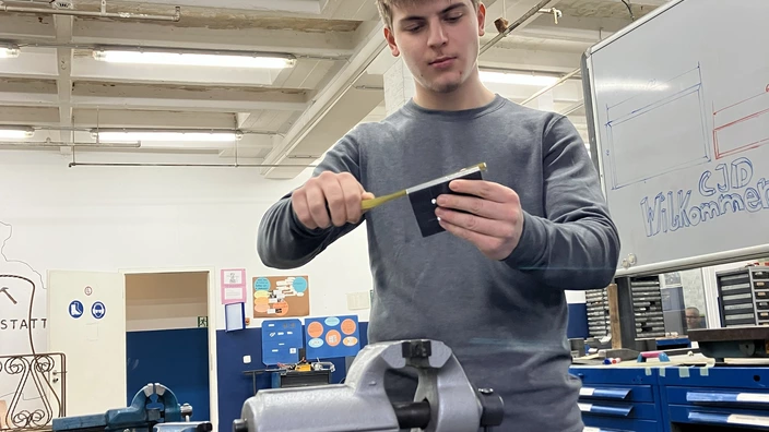 Ich heiße Lennard, bin 20 Jahre alt und mache im CJD die Ausbildung zum Metallbearbeiter. Ich bin im zweiten Lehrjahr und mag diesen Beruf richtig gern. Handwerk liegt mir einfach. Am Ende des Tages sehe ich, was ich geschafft habe und das macht mich stolz.