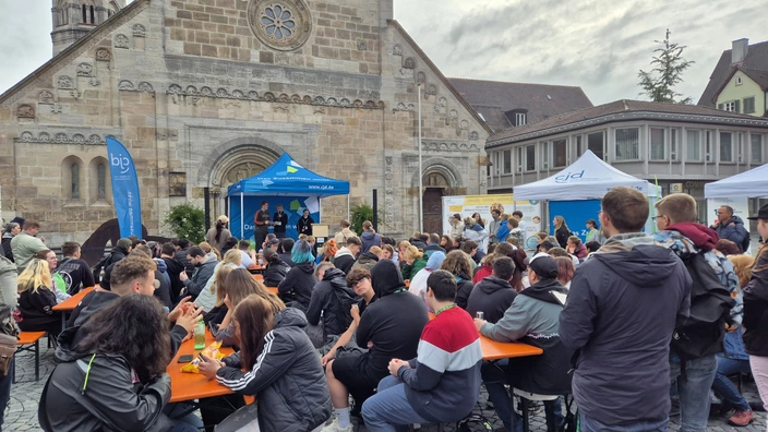 Neben den engagierten jungen Menschen war auch die Verbundleitung des CJD Baden-Württemberg aktiv dabei. Die Gesamtleiter Reinhard Sechser und Alexander Lawitschka sowie weitere Mitglieder der Verbundleitung beteiligten sich unter anderem an der großen Aktion auf dem Johannisplatz in Schwäbisch Gmünd, bei der auch CJD Präsidentin Dr. Kornelie Schütz-Scheifele, Oberbürgermeister Richard Arnold und der CDU-Landtagsabgeordnete Tim Bückner zugegen waren, und setzten so ein starkes Zeichen für Demokratie und gesellschaftliches Engagement.