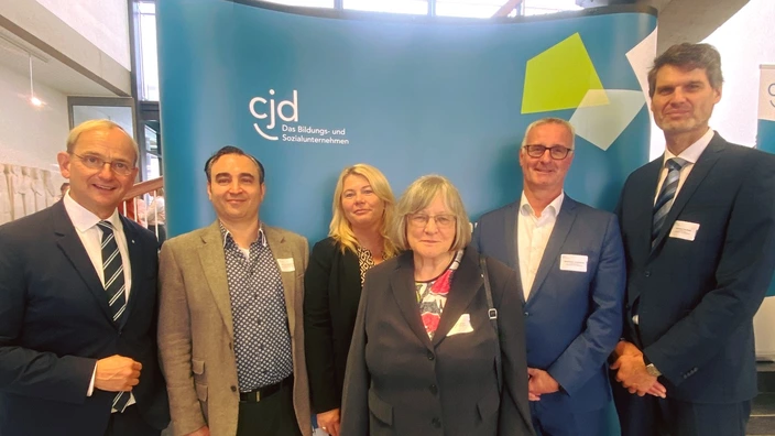 Gernot Imgart, Leitender Geschäftsführer der IHK Region Stuttgart, teilte Einblicke zu den Herausforderungen und Chancen der Begleitung junger Menschen in der dualen Berufsausbildung. In einer spannenden Gesprächsrunde diskutierten Aileen Benz und Tilo Braun vom CJD Offenburg, Markus Schropp (CJD) und Gernot Imgart im Anschluss über Chancen zur Bewältigung des Fachkräftemangels.