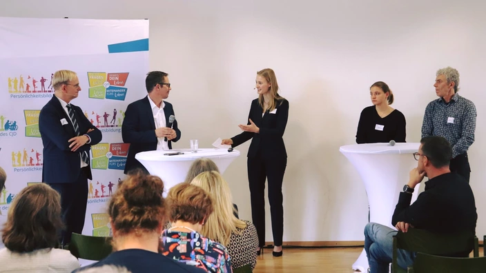 Prof. Dr. Ahmed A. Karim von der Tübinger Universitätsklinik beleuchtete aktuelle Trends und innovative Rehabilitationsmethoden bei psychischen und psychosomatischen Störungen. Danach sprach Mechthild Ziegler, Vorstandsvorsitzende von LERNEN FÖRDERN, über die Bedeutung beruflicher Rehabilitation für junge Menschen mit Beeinträchtigungen.
