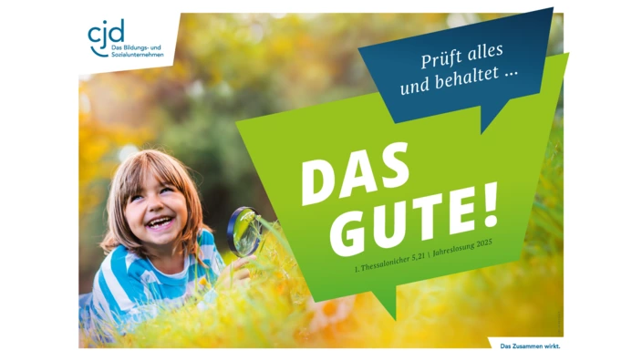 Thomas Kerksiek, Mitarbeiter im Bereich Wertekommunikation im CJD, sagt dazu: „Die Jahreslosung 2025 bedeutet für mich: Du darfst Dein Leben in Freiheit gestalten und genießen - Gott möchte, dass sich Dein Leben entfalten kann. Dein Leben soll gelingen. Deshalb frage danach, was für Dein Leben gut ist und was nicht. Frage auch danach, was für das Leben der anderen in unserer Welt gut ist und was nicht. Und dann handle so in dieser Welt, dass gelingendes Leben möglich ist – für Dich und für alle anderen. Prüft alles. Das Prüfkriterium für Gutes oder Schlechtes heißt: Gelingendes Leben. Behaltet das, was dem Leben dient.“