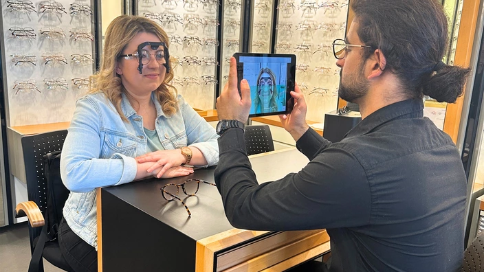 Zu seinen täglichen Aufgaben gehört unter anderem die Beratung von Kund*innen und das Anfertigen der passenden Brillen. Erst kürzlich durfte er für seine ehemalige Betreuerin Josepha Gerhardt eine neue Blaulichtfilterbrille für die Arbeit am PC fertigen. Ein großartiges Erlebnis für beide.