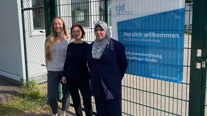 Das Foto zeigt die stellvertretende Einrichtungsleitung Kyra Gawlista mit unseren beiden Sozialarbeiterinnen Kathrin Lange und Majedah Albsharat (von links nach rechts).