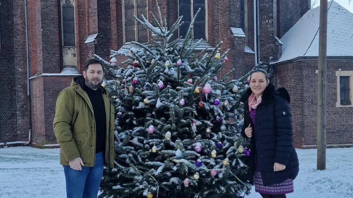 Erzpriester Danilo Dangubic und seine Frau Andjela Dangubic freuen sich sehr über den Baum und sind dem CJD Zehnthof Essen sehr dankbar. Auch Marlon Caspers, Standortleiter im CJD Essen, findet diese Aktion sehr gelungen und geht von einer Wiederholung zum nächsten Weihnachtsfest aus.