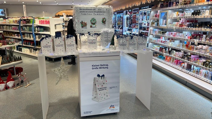 Bei einer tollen vorweihnachtlichen Aktion konnten Kunden vorgepackte Päckchen mit einem Wert von 5 bis 10 Euro für nur 4 Euro im dm-Markt in Kusel erwerben. Diese wurden am 22.12.2023 dem Kinderhaus Bedesbach übergeben und die Kinder freuten sich zu Weihnachten über die Produkte von dm. Zudem kam eine Spende in Höhe von 500 Euro zusammen, welche die Filialleiterin Anika Leonhard und die Mitarbeiterin Vanessa Mailet der Teamleitung Anna-Lena Fauß und der Angebotsleitung Jasmin Jacobi-Fries überreichten.