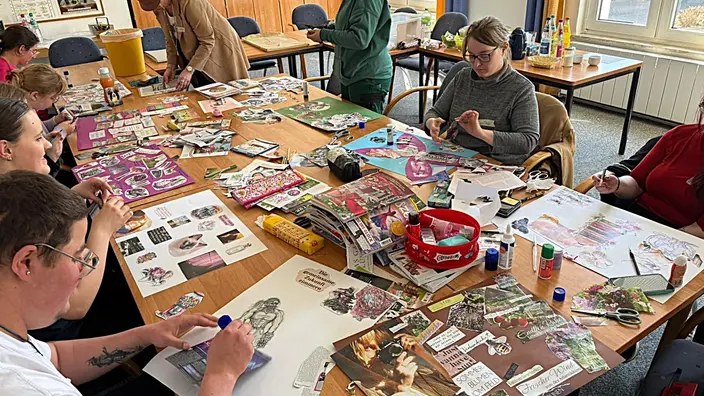 Der Workshop begann mit einer offenen Einstiegsrunde: Die Mitmachenden wählten jeweils ein Tier aus, das ihre aktuelle Stimmung oder ihre Persönlichkeit widerspiegelt. Dieser kreative Einstieg förderte die Selbstreflexion und trug dazu bei, eine vertrauensvolle und wertschätzende Atmosphäre in der Gruppe zu schaffen. Im Anschluss startete die kreative Arbeitsphase.