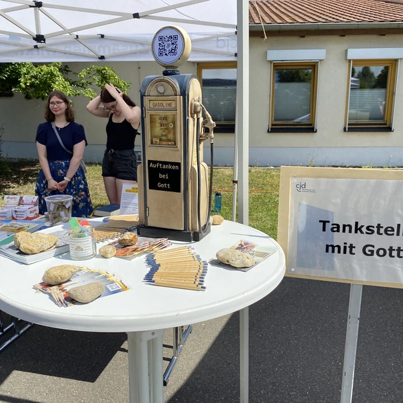 Die Regenbogengruppe aus dem CJD BBW Gera brachte Farbe ins Spiel, mit ihrem kunterbunten Stand, cooler Kreide-Challenge und stylischen Giveaways. Außerdem gab’s eine „Tankstelle mit Gott“, eine Bibelsammlung mit dem gewissen Etwas, einen Inselstand, eine Fotobox und natürlich jede Menge Leckeres vom Grill. Die Küche hat einfach abgeliefert!