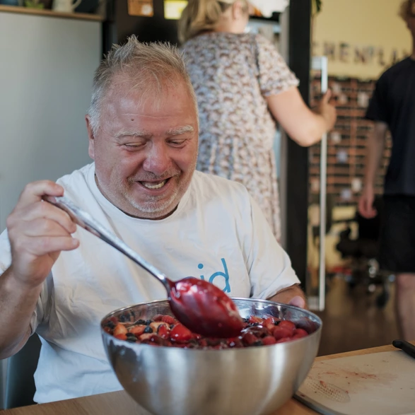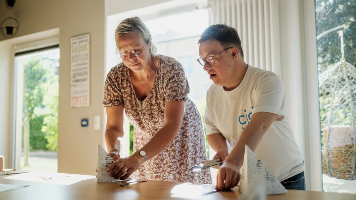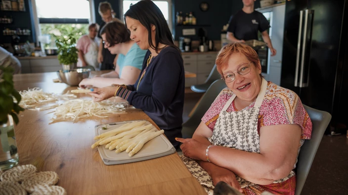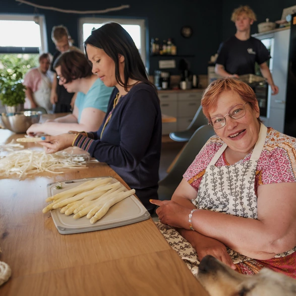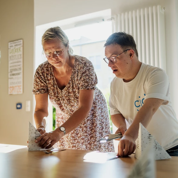 Unsere Mitarbeitenden sehen wir demnach als Gäste im Haus der 14 Bewohnerinnen und Bewohner, in dem das Angebot stattfindet. Im Kern geht es darum, für erwachsene Menschen mit Behinderung eine weitgehend selbstbestimmte Lebensumgebung zu schaffen und ihnen mehr Möglichkeiten zur integrativen Lebens- und Freizeitgestaltung zu geben.