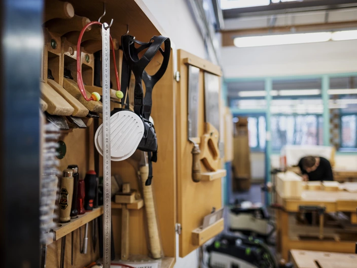 Noch vor einem halben Jahr stand Nadine ziemlich ratlos da. Ohne Schulabschluss, ohne Ausbildungs- und Arbeitsplatz, ohne Perspektive – keine Maßnahme konnte ihr weiterhelfen. Doch in der Produktionsschule im CJD wendet sich das Blatt für die 16-Jährige. Während der Kompetenzanalyse "Profil AC" entdeckt sie ihre Begabung fürs Handwerkliche. Heute beginnt für Nadine jeden Morgen um acht Uhr ein neuer Arbeits- und Lerntag. An ihrem Arbeitsplatz in der Holzwerkstatt ist sie mit vollem Einsatz dabei. Professionell ausgerüstet und unter Anleitung von qualifizierten Fachkräften bearbeitet sie mit ihren Kolleginnen und Kollegen konkrete Kundenaufträge. Das motiviert und schafft echte Erfolgserlebnisse: