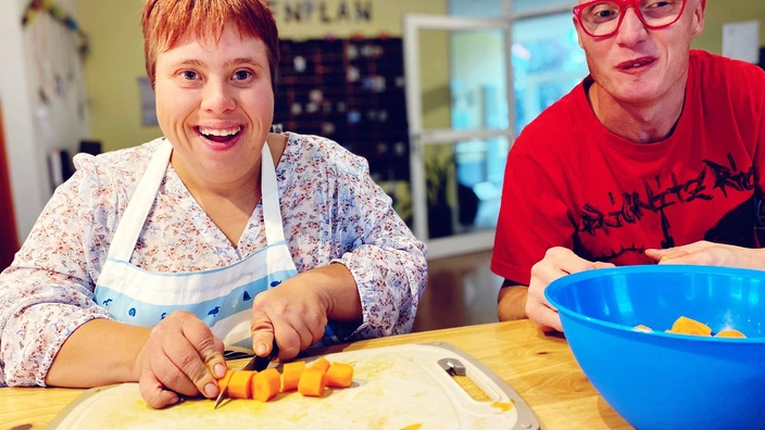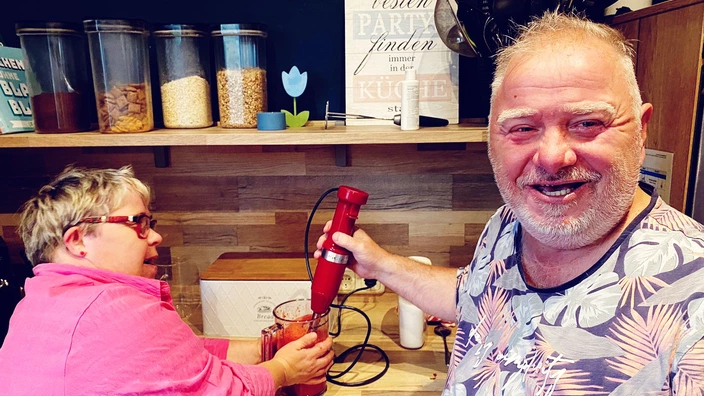 Seit zwei Jahren gibt es die Koch AG. Ins Leben gerufen von Hanka Bielert und angeleitet von Martin Kley, Koch, ehemaliger Gastronom und kreativer Kulinariker, der sich die Menüs ausdenkt und gemeinsam mit den Bewohnerinnen und Bewohnern zubereitet.