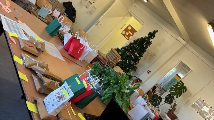 Da hatte der Weihnachtsmann beim Verteilen allerhand zu tun. Ein ehemaliger Kollege aus der Einrichtung hat freiwillig und gerne den Job übernommen und sich sogar extra für die Aktion den Bart lang wachsen lassen. Nicht nur die Geschenke wurden über Monate hinweg vorbereitet, sondern auch der Weihnachtsmannbart!