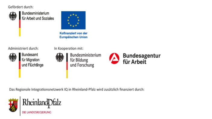 Das Programm "Integration durch Qualifizierung (IQ)" wird durch das Bundesministerium für Arbeit und Soziales und die Europäische Union über den Europäischen Sozialfonds Plus (ESF Plus) gefördert und vom Bundesamt für Migration und Flüchtlinge administriert. Partner in der Umsetzung sind das Bundesministerium für Bildung und Forschung und die Bundesagentur für Arbeit.