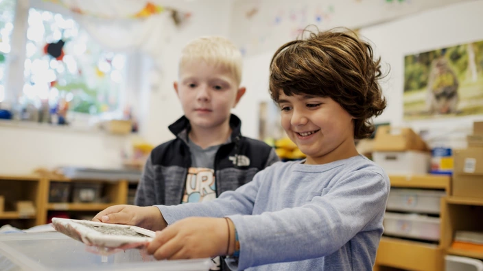 In den altersgemischten Gruppen (im Krippenbereich von 8 Wochen bis 3 Jahre, im Elementarbereich von 3 Jahren bis Schuleintritt) können Kinder das soziale Zusammenleben in der Gemeinschaft erleben, erste Freundschaften schließen und in einer anregenden Lernumgebung ihren kindlichen Forschungs- und Entdeckungsdrang gemeinsam ausleben. Unser 32-köpfiges Team besteht momentan aus 26 Erzieherinnen und Erziehern, dem Leitungsteam, einer Mitarbeiterin im Projekt der erweiterten Elternarbeit sowie zwei Wirtschaftskräften und einem Hausmeister.