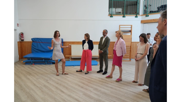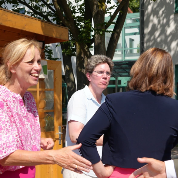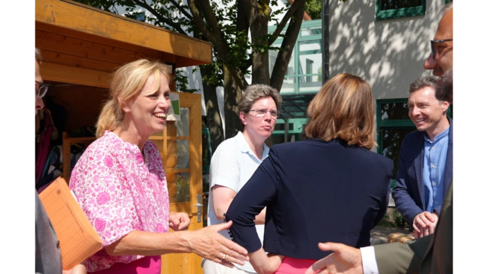 Im Rahmen ihres Antrittsbesuches bei der niedersächsischen Kultusministerin Julia Willie Hamburg (Grüne), besuchte Karin Prien (CDU), Bundesministerin für Bildung, Familie, Senioren, Frauen und Jugend, das CJD Familienzentrum für inklusive Begabungsförderung in Hannover Mittelfeld.