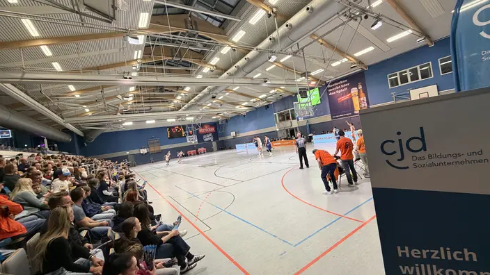 In Kooperation mit dem Schulverein hatten wir einen CJD Info-Stand sowie eine "Spiel und Sport-Straße" für Kinder aufgebaut, die sehr gut angenommen wurde. Vor dem Spiel überreichte unsere stellvertretende Schulleiterin Stefanie Unger den Spielball symbolisch an die Schiedsrichter. In den Pausen stellen wir das CJD noch einmal den Fans der Seawolves vor und luden sie zum Besuchen unseres CJD-Stands ein. Dort hatten wir ein besonderes Gewinnspiel vorbereitet.