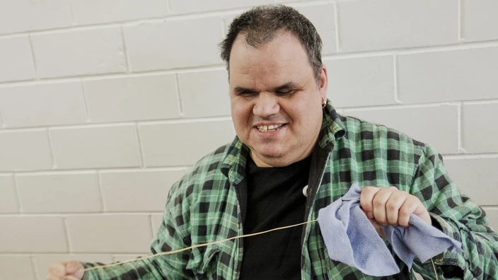 Maik arbeitet in der Flechtwerkstatt des CJD in Erfurt. Dort werden seine Fähigkeiten fürs Flechten vor über 20 Jahren entdeckt. Mit viel Fingerspitzengefühl flicht er heute neue Sitzflächen für alte Stühle. Eine filigrane Arbeit, die Maik große Freude bereitet. Nicht weniger begeistert ihn die Musik. Sie ist für Maik etwas ganz Besonderes. Musik mache fröhlich, denn beim Musizieren spüre man seine Emotionen und könne sie nach außen tragen.