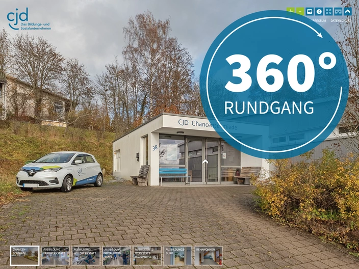 Unser digitaler 360°-Rundgang ermöglicht Ihnen einen umfassenden Einblick in unsere Einrichtung. Erkunden Sie die Ausbildungsbereiche des CJD Altensteig ganz bequem von Ihrem Bildschirm aus.