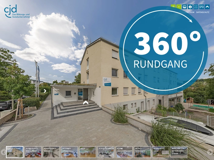 Unser digitaler 360°-Rundgang ermöglicht Ihnen einen umfassenden Einblick in unsere Einrichtung. Erkunden Sie die Ausbildungsbereiche des CJD Stuttgart (Katharina und Kurt Heermann-Jugenddorf) ganz bequem von Ihrem Bildschirm aus.