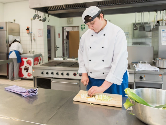 Mit 18 Jahren verließ Jonas (Name geändert) die Förderschule und begann im CJD in Stuttgart eine Ausbildung zum Fachpraktiker Küche (früher Beikoch). Damals galt er als Problemschüler mit Lernschwierigkeiten und fehlender Perspektive. "Die ersten Monate fielen mir sehr schwer", blickt Jonas zurück. Die Ausbildung erforderte Durchhaltevermögen und Disziplin. Seinem Ausbilder gelang es, den richtigen Umgang zu finden und Jonas zu motivieren. Nach und nach wandelte er sich zum Vorzeige-Azubi mit Bestnoten.